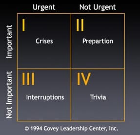 Stephen Covey è IL guru della Crescita Personale. Con il suo libro “Le 7 regole per avere successo” ha venduto milioni di copie e cambiato altrettante vite. Uno dei principi suggeriti dal Dr. Covey per gestire al meglio il proprio tempo è quello dei 4 quadranti: