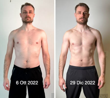 Nei primi 3 mesi ci siamo concentrati sul togliere i “chiletti” di troppo e ancor prima che arrivasse gennaio, avevo già perso 5kg di massa grassa e guadagnato 2kg di massa muscolare.