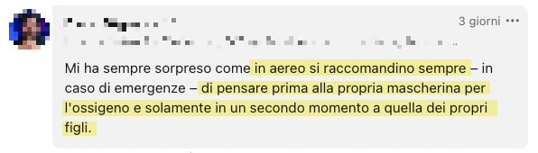 Eppure, inizio a pensare che questa storiella della mascherina dell’ossigeno in aereo, in realtà, NON è una buona metafora di crescita personale.
